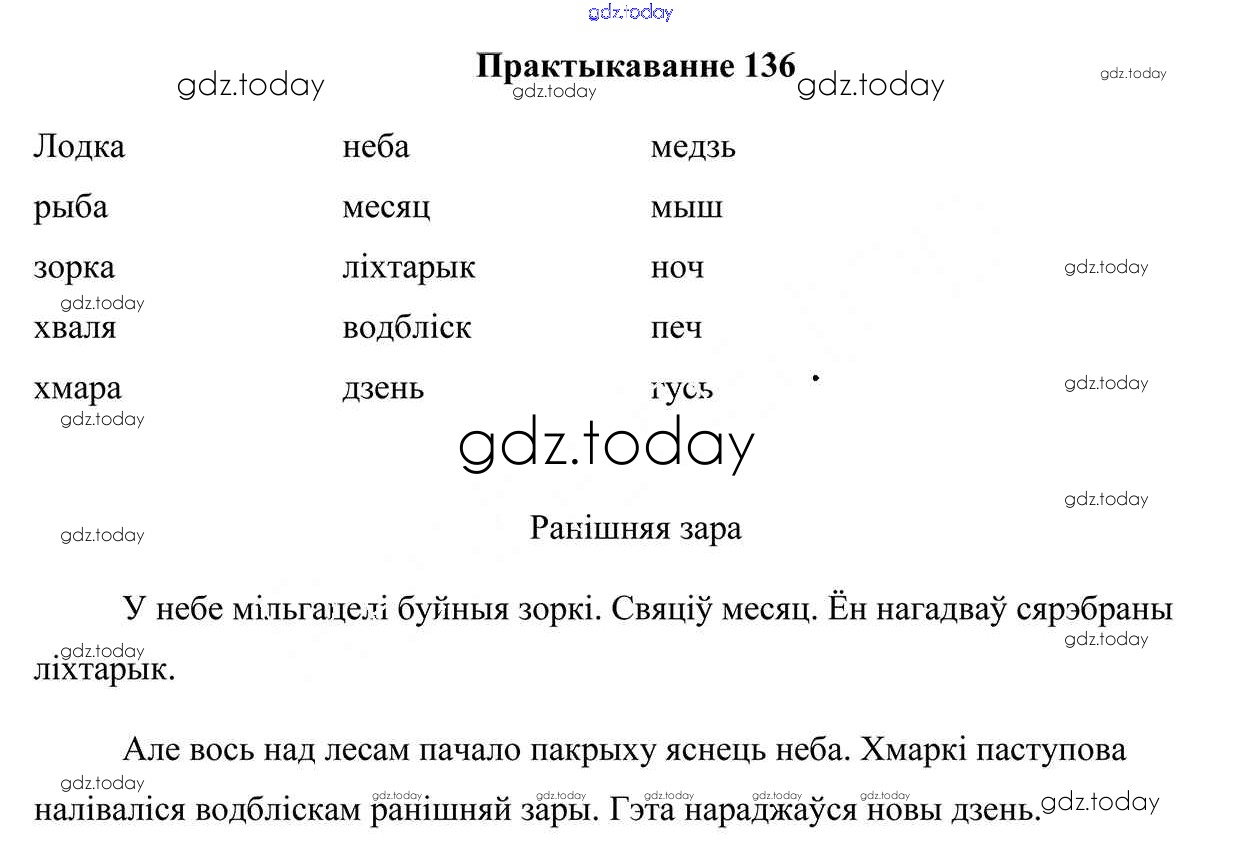 На страницах сайта gdz.today вы найдете учебный и вспомогательный материал, направленный на улучшения знаний школьной программы. ГДЗ - онлайн мир знаний Рашальнік да часткі 1. Практыкаванні 136 Учебнику по Белорусскому языку для 4 класса Свірыдзенка Национальный институт образования 2018