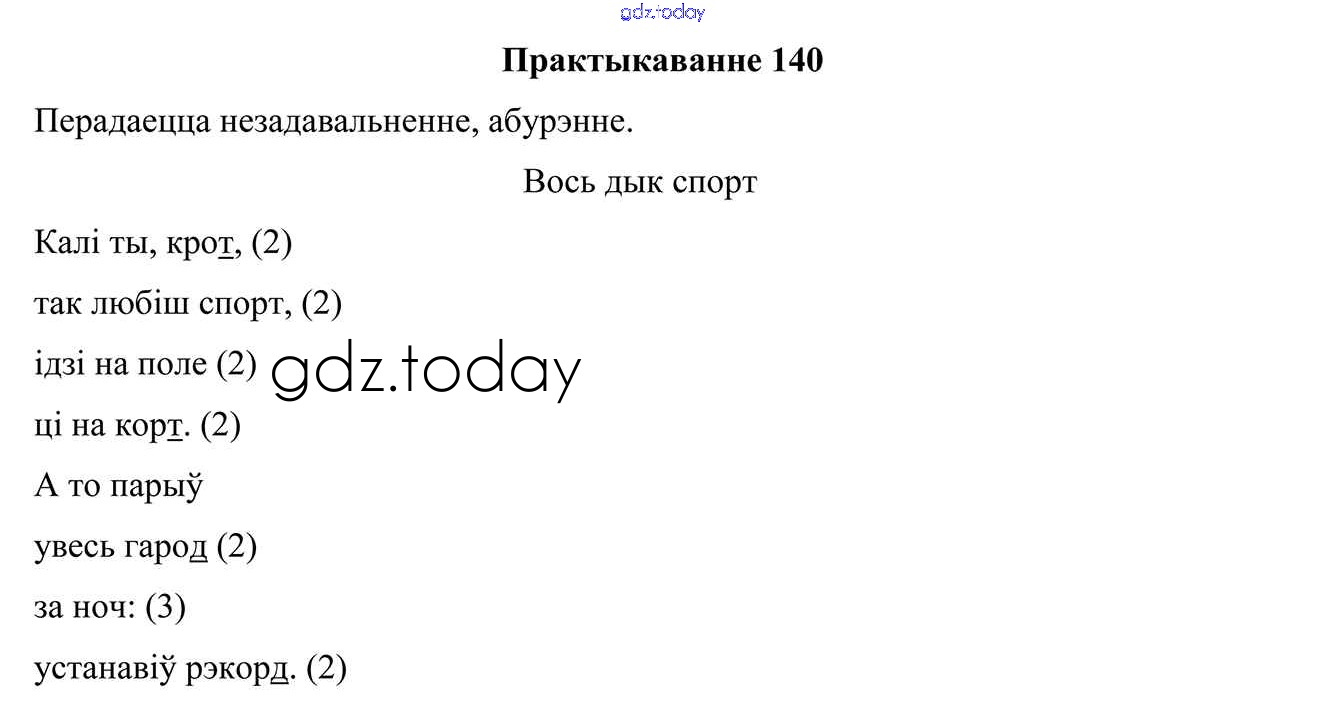 На страницах сайта gdz.today вы найдете учебный и вспомогательный материал, направленный на улучшения знаний школьной программы. ГДЗ - онлайн мир знаний Рашальнік да часткі 1. Практыкаванні 140 Учебнику по Белорусскому языку для 4 класса Свірыдзенка Национальный институт образования 2018