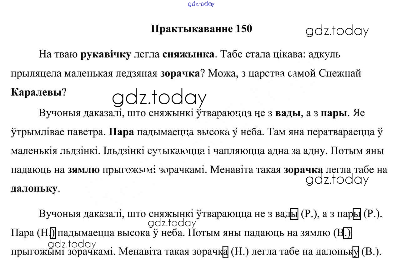 На страницах сайта gdz.today вы найдете учебный и вспомогательный материал, направленный на улучшения знаний школьной программы. ГДЗ - онлайн мир знаний Рашальнік да часткі 1. Практыкаванні 150 Учебнику по Белорусскому языку для 4 класса Свірыдзенка Национальный институт образования 2018