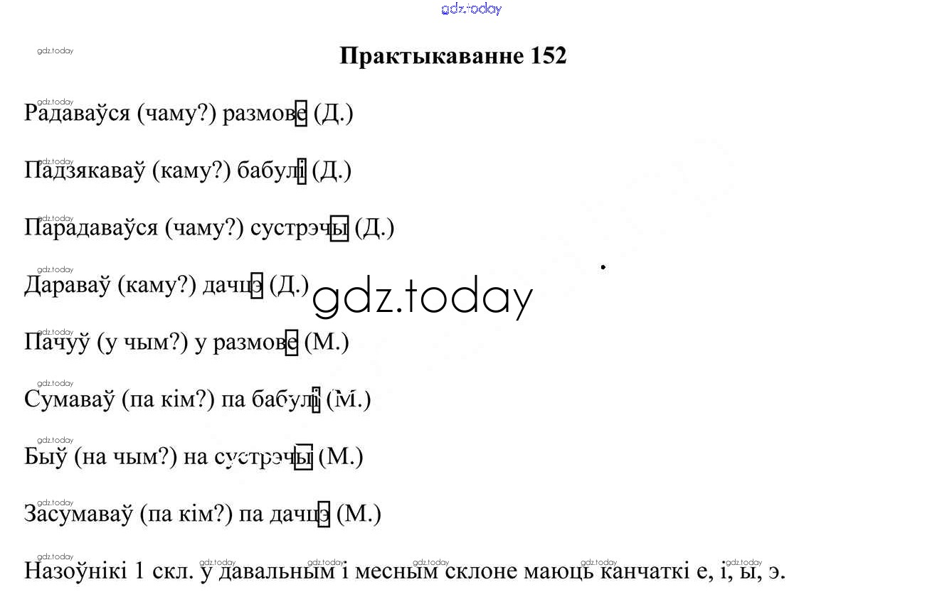 На страницах сайта gdz.today вы найдете учебный и вспомогательный материал, направленный на улучшения знаний школьной программы. ГДЗ - онлайн мир знаний Рашальнік да часткі 1. Практыкаванні 152 Учебнику по Белорусскому языку для 4 класса Свірыдзенка Национальный институт образования 2018