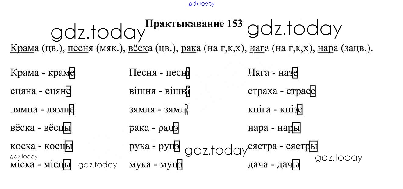 На страницах сайта gdz.today вы найдете учебный и вспомогательный материал, направленный на улучшения знаний школьной программы. ГДЗ - онлайн мир знаний Рашальнік да часткі 1. Практыкаванні 153 Учебнику по Белорусскому языку для 4 класса Свірыдзенка Национальный институт образования 2018