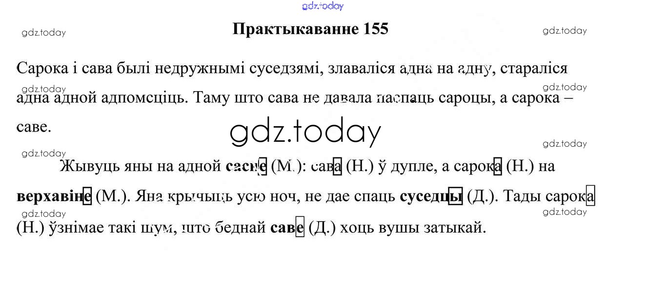 На страницах сайта gdz.today вы найдете учебный и вспомогательный материал, направленный на улучшения знаний школьной программы. ГДЗ - онлайн мир знаний Рашальнік да часткі 1. Практыкаванні 155 Учебнику по Белорусскому языку для 4 класса Свірыдзенка Национальный институт образования 2018