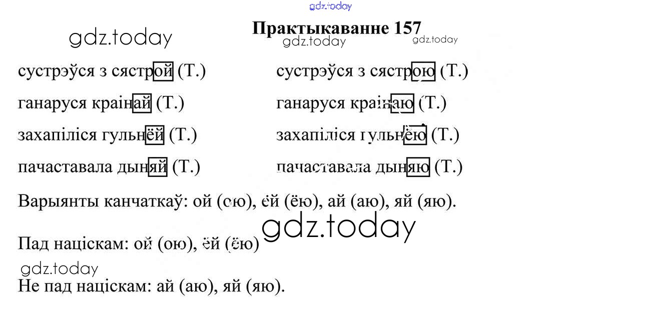 На страницах сайта gdz.today вы найдете учебный и вспомогательный материал, направленный на улучшения знаний школьной программы. ГДЗ - онлайн мир знаний Рашальнік да часткі 1. Практыкаванні 157 Учебнику по Белорусскому языку для 4 класса Свірыдзенка Национальный институт образования 2018
