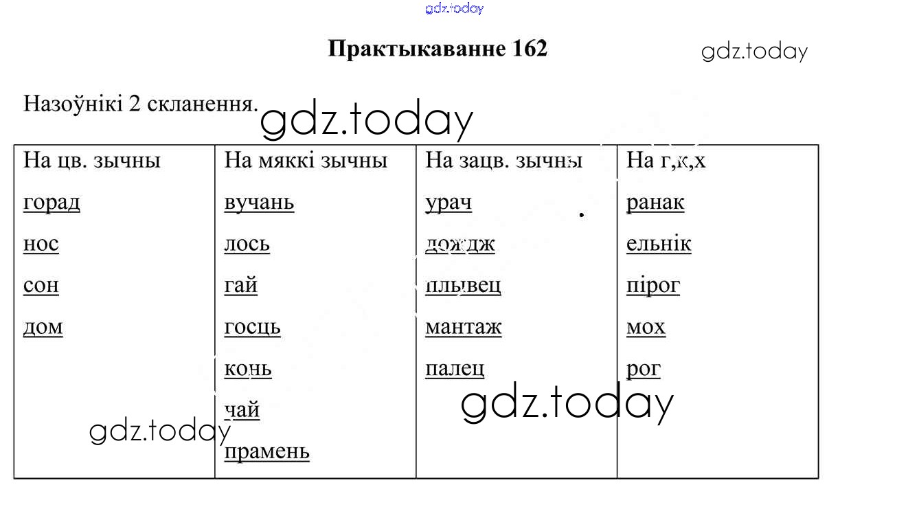 На страницах сайта gdz.today вы найдете учебный и вспомогательный материал, направленный на улучшения знаний школьной программы. ГДЗ - онлайн мир знаний Рашальнік да часткі 1. Практыкаванні 162 Учебнику по Белорусскому языку для 4 класса Свірыдзенка Национальный институт образования 2018