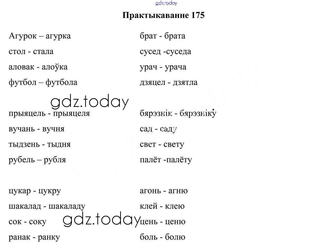 На страницах сайта gdz.today вы найдете учебный и вспомогательный материал, направленный на улучшения знаний школьной программы. ГДЗ - онлайн мир знаний Рашальнік да часткі 1. Практыкаванні 175 Учебнику по Белорусскому языку для 4 класса Свірыдзенка Национальный институт образования 2018