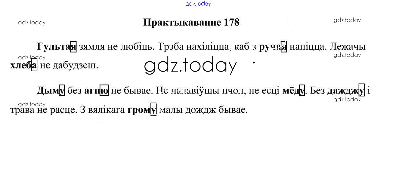 На страницах сайта gdz.today вы найдете учебный и вспомогательный материал, направленный на улучшения знаний школьной программы. ГДЗ - онлайн мир знаний Рашальнік да часткі 1. Практыкаванні 178 Учебнику по Белорусскому языку для 4 класса Свірыдзенка Национальный институт образования 2018