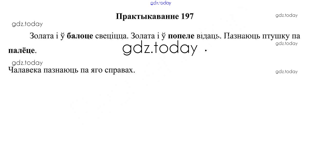 На страницах сайта gdz.today вы найдете учебный и вспомогательный материал, направленный на улучшения знаний школьной программы. ГДЗ - онлайн мир знаний Рашальнік да часткі 1. Практыкаванні 197 Учебнику по Белорусскому языку для 4 класса Свірыдзенка Национальный институт образования 2018