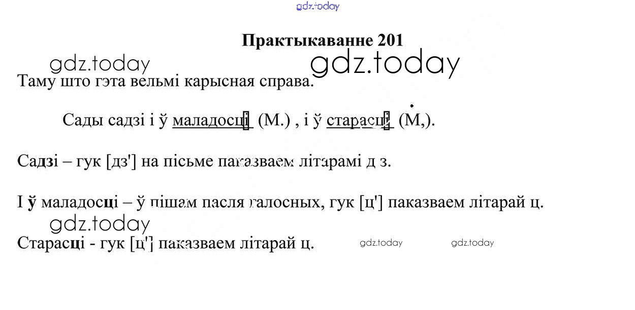 На страницах сайта gdz.today вы найдете учебный и вспомогательный материал, направленный на улучшения знаний школьной программы. ГДЗ - онлайн мир знаний Рашальнік да часткі 1. Практыкаванні 201 Учебнику по Белорусскому языку для 4 класса Свірыдзенка Национальный институт образования 2018