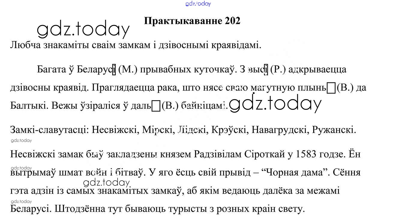 На страницах сайта gdz.today вы найдете учебный и вспомогательный материал, направленный на улучшения знаний школьной программы. ГДЗ - онлайн мир знаний Рашальнік да часткі 1. Практыкаванні 202 Учебнику по Белорусскому языку для 4 класса Свірыдзенка Национальный институт образования 2018