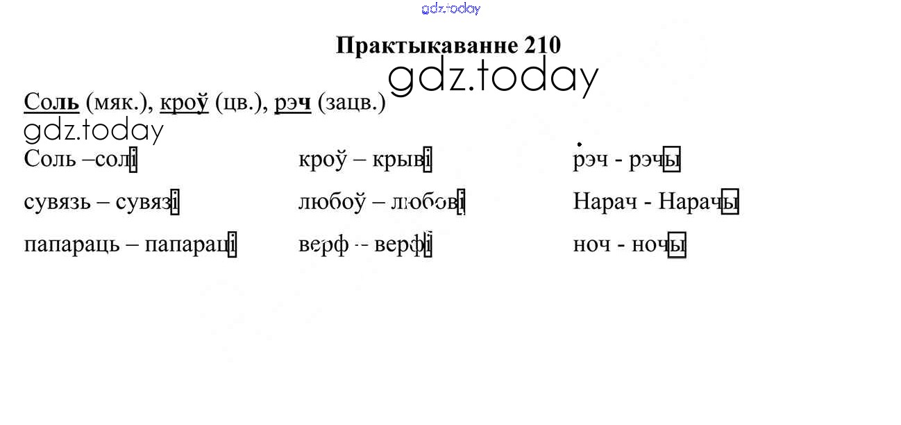 На страницах сайта gdz.today вы найдете учебный и вспомогательный материал, направленный на улучшения знаний школьной программы. ГДЗ - онлайн мир знаний Рашальнік да часткі 1. Практыкаванні 210 Учебнику по Белорусскому языку для 4 класса Свірыдзенка Национальный институт образования 2018
