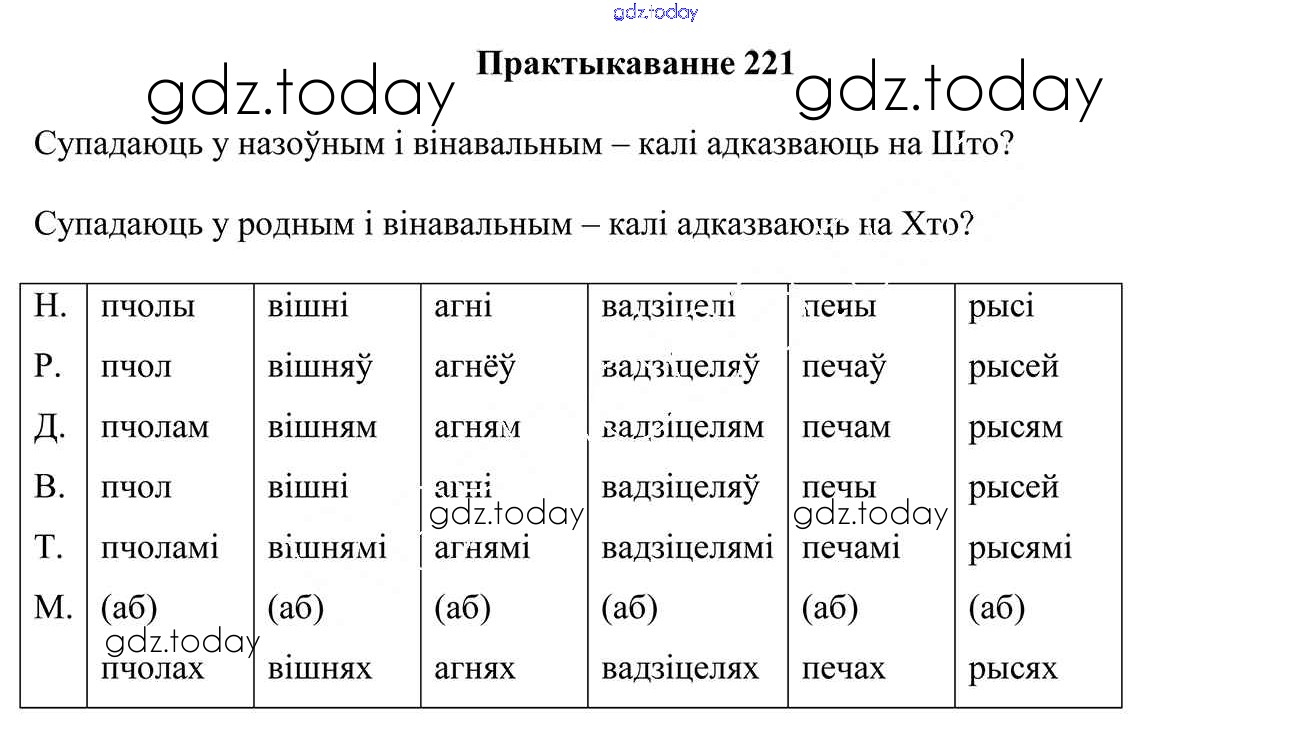 На страницах сайта gdz.today вы найдете учебный и вспомогательный материал, направленный на улучшения знаний школьной программы. ГДЗ - онлайн мир знаний Рашальнік да часткі 1. Практыкаванні 221 Учебнику по Белорусскому языку для 4 класса Свірыдзенка Национальный институт образования 2018