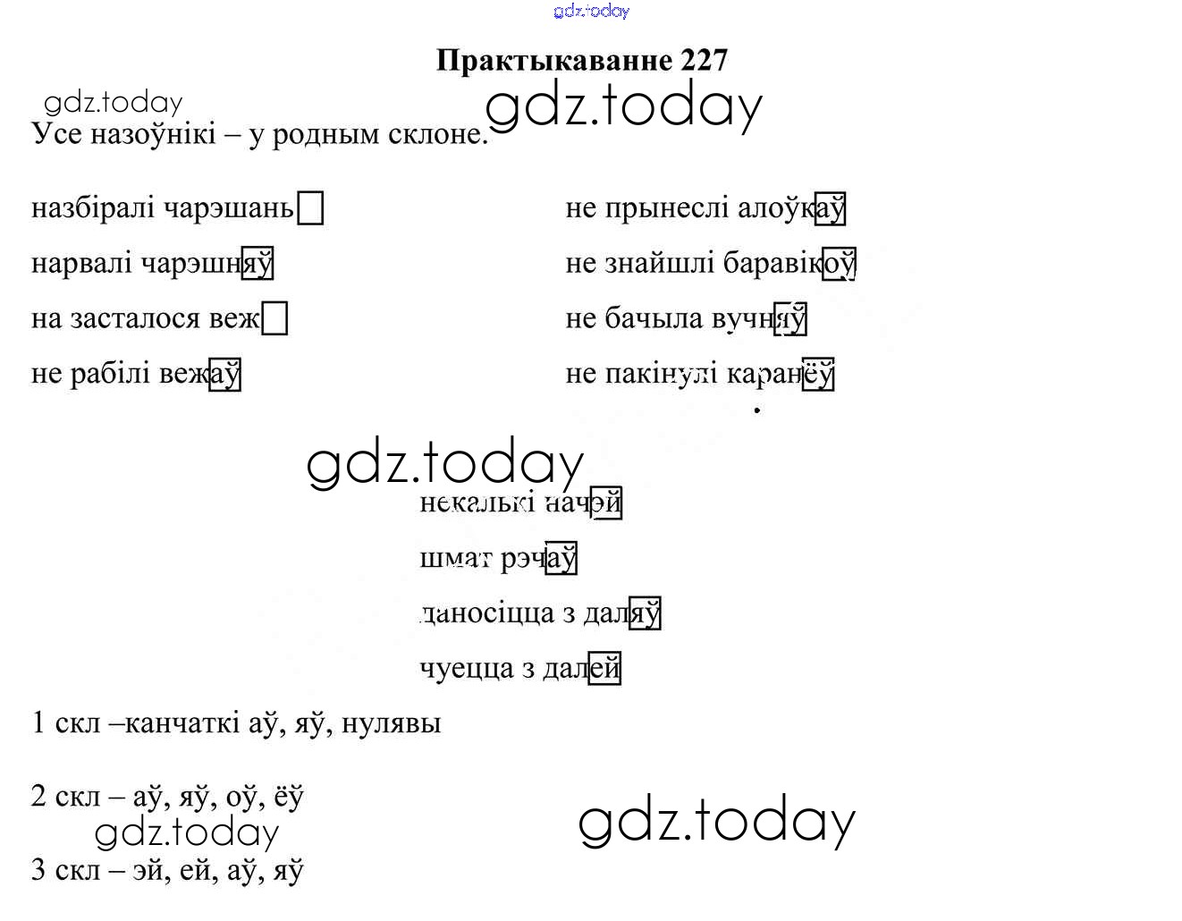 На страницах сайта gdz.today вы найдете учебный и вспомогательный материал, направленный на улучшения знаний школьной программы. ГДЗ - онлайн мир знаний Рашальнік да часткі 1. Практыкаванні 227 Учебнику по Белорусскому языку для 4 класса Свірыдзенка Национальный институт образования 2018
