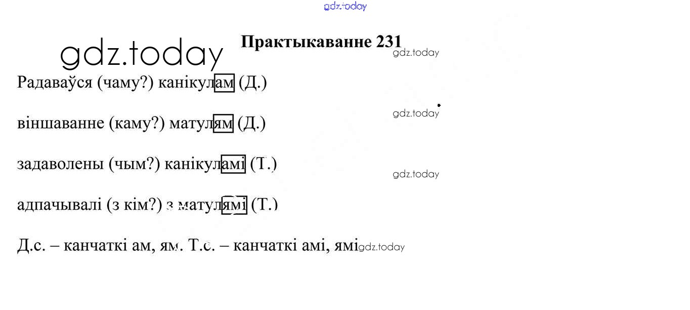 На страницах сайта gdz.today вы найдете учебный и вспомогательный материал, направленный на улучшения знаний школьной программы. ГДЗ - онлайн мир знаний Рашальнік да часткі 1. Практыкаванні 231 Учебнику по Белорусскому языку для 4 класса Свірыдзенка Национальный институт образования 2018
