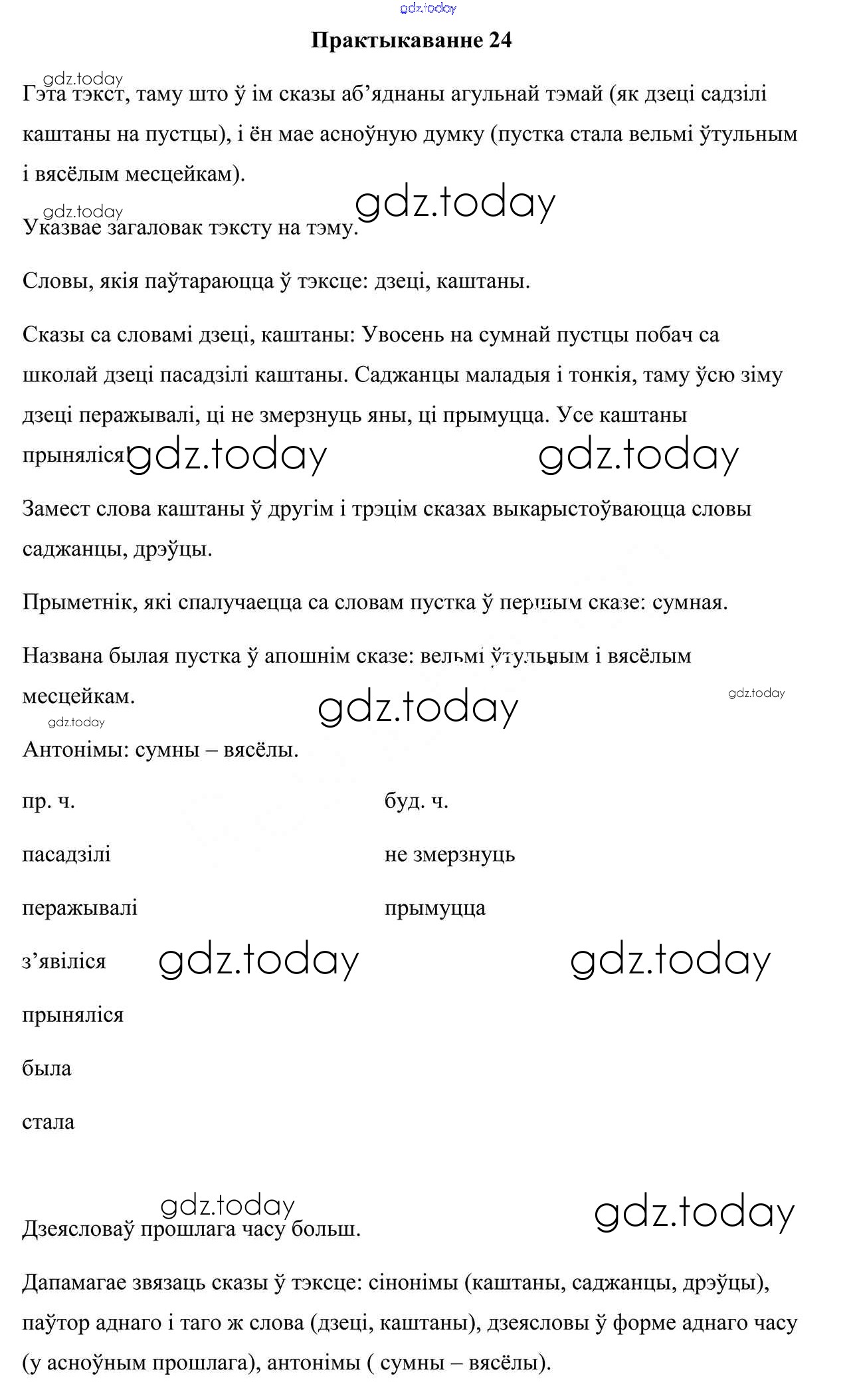 На страницах сайта gdz.today вы найдете учебный и вспомогательный материал, направленный на улучшения знаний школьной программы. ГДЗ - онлайн мир знаний Рашальнік да часткі 1. Практыкаванні 24 Учебнику по Белорусскому языку для 4 класса Свірыдзенка Национальный институт образования 2018
