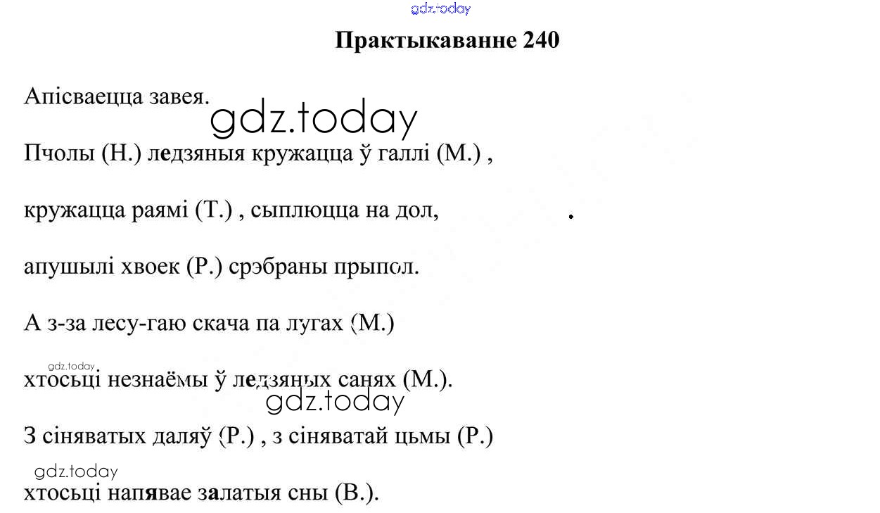 На страницах сайта gdz.today вы найдете учебный и вспомогательный материал, направленный на улучшения знаний школьной программы. ГДЗ - онлайн мир знаний Рашальнік да часткі 1. Практыкаванні 240 Учебнику по Белорусскому языку для 4 класса Свірыдзенка Национальный институт образования 2018