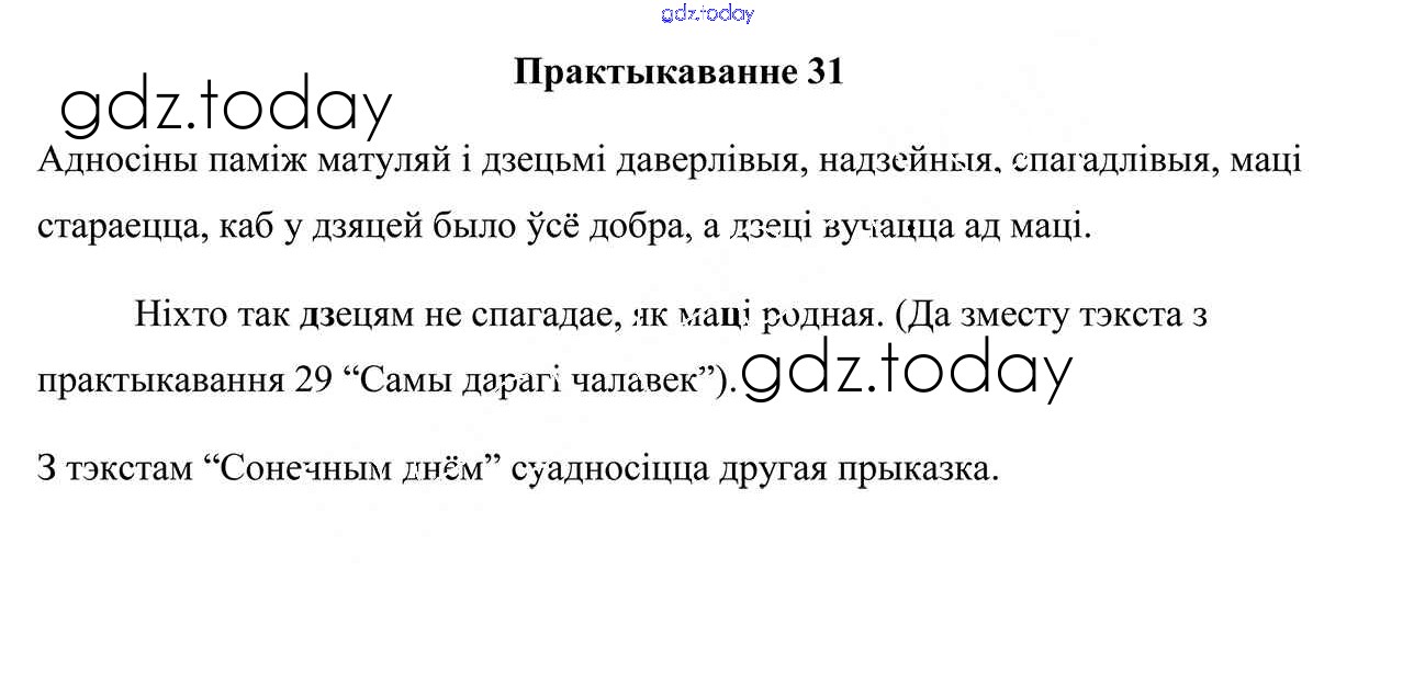 На страницах сайта gdz.today вы найдете учебный и вспомогательный материал, направленный на улучшения знаний школьной программы. ГДЗ - онлайн мир знаний Рашальнік да часткі 1. Практыкаванні 31 Учебнику по Белорусскому языку для 4 класса Свірыдзенка Национальный институт образования 2018