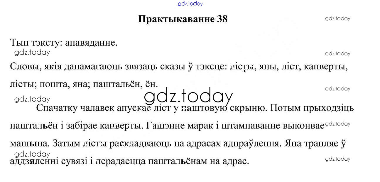 На страницах сайта gdz.today вы найдете учебный и вспомогательный материал, направленный на улучшения знаний школьной программы. ГДЗ - онлайн мир знаний Рашальнік да часткі 1. Практыкаванні 38 Учебнику по Белорусскому языку для 4 класса Свірыдзенка Национальный институт образования 2018