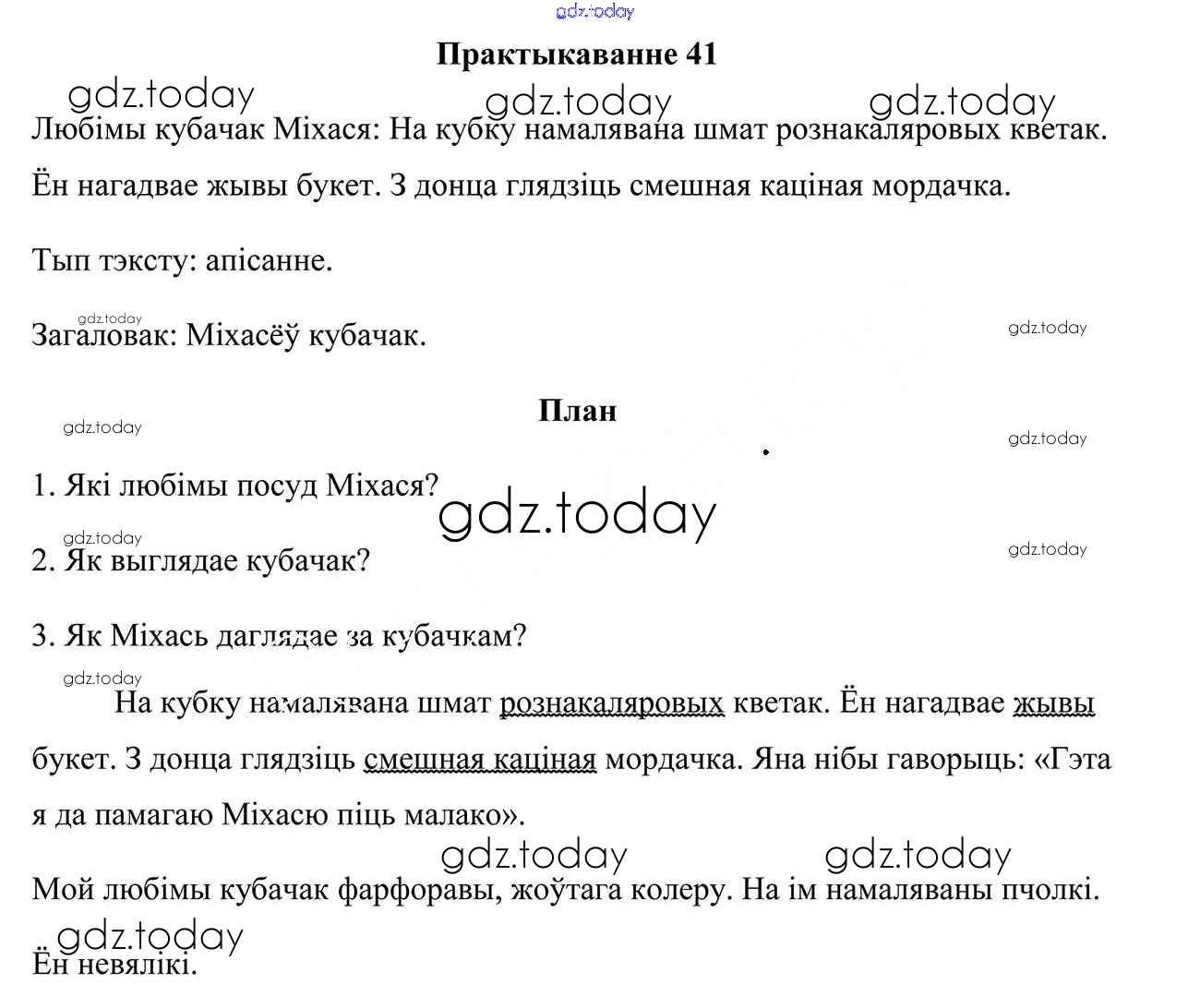 На страницах сайта gdz.today вы найдете учебный и вспомогательный материал, направленный на улучшения знаний школьной программы. ГДЗ - онлайн мир знаний Рашальнік да часткі 1. Практыкаванні 41 Учебнику по Белорусскому языку для 4 класса Свірыдзенка Национальный институт образования 2018