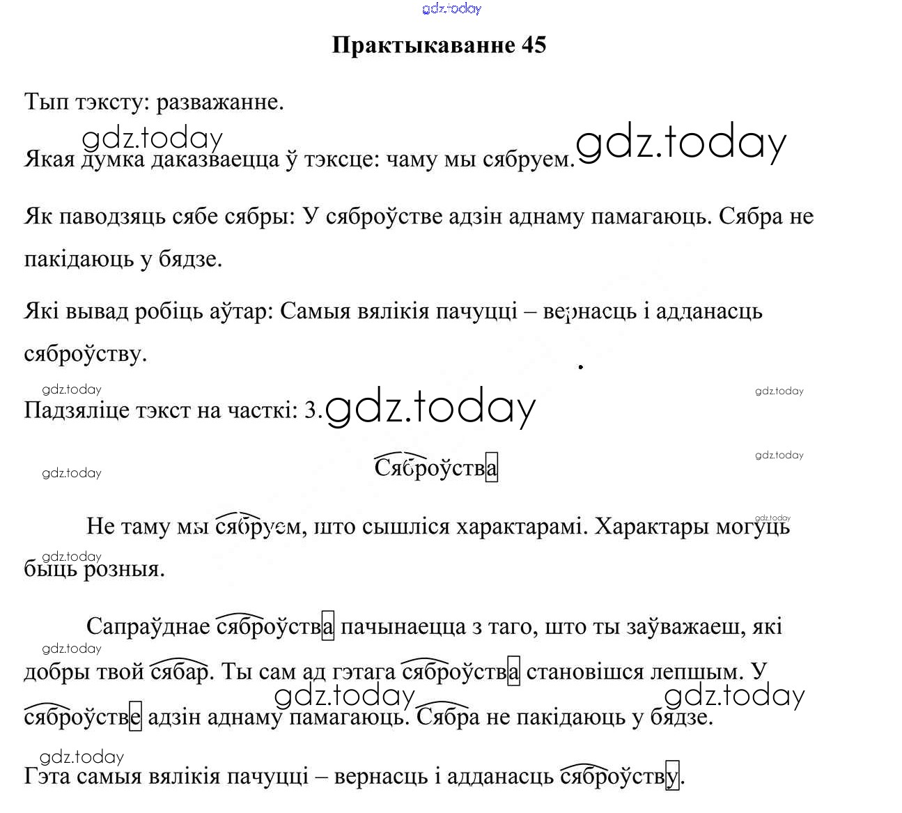 На страницах сайта gdz.today вы найдете учебный и вспомогательный материал, направленный на улучшения знаний школьной программы. ГДЗ - онлайн мир знаний Рашальнік да часткі 1. Практыкаванні 45 Учебнику по Белорусскому языку для 4 класса Свірыдзенка Национальный институт образования 2018