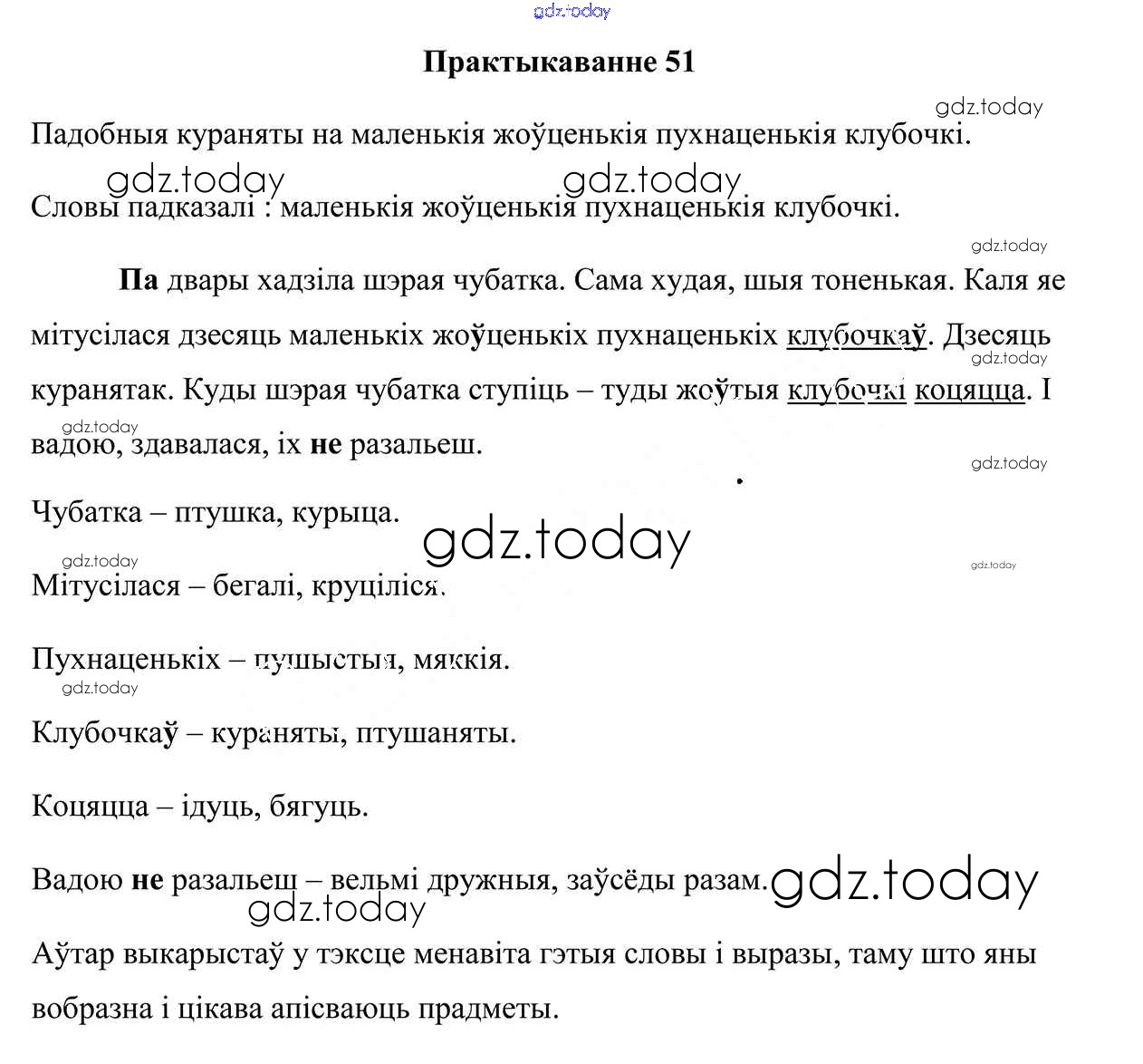 На страницах сайта gdz.today вы найдете учебный и вспомогательный материал, направленный на улучшения знаний школьной программы. ГДЗ - онлайн мир знаний Рашальнік да часткі 1. Практыкаванні 51 Учебнику по Белорусскому языку для 4 класса Свірыдзенка Национальный институт образования 2018
