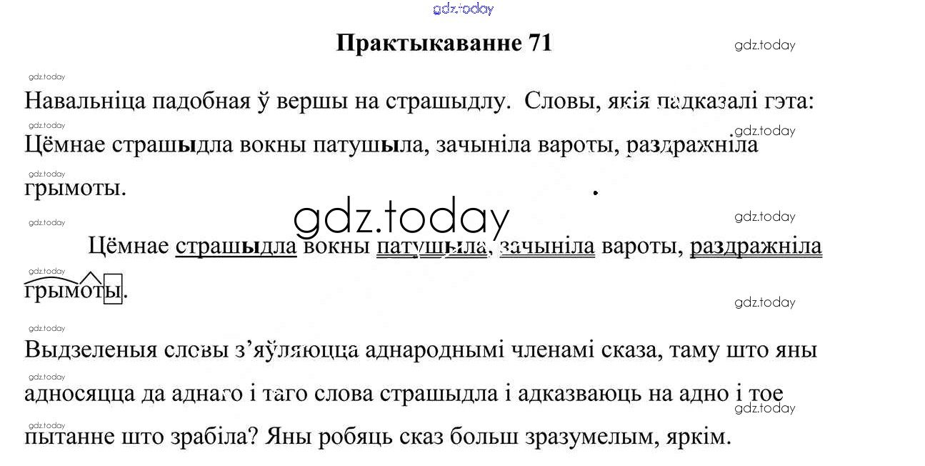 На страницах сайта gdz.today вы найдете учебный и вспомогательный материал, направленный на улучшения знаний школьной программы. ГДЗ - онлайн мир знаний Рашальнік да часткі 1. Практыкаванні 71 Учебнику по Белорусскому языку для 4 класса Свірыдзенка Национальный институт образования 2018