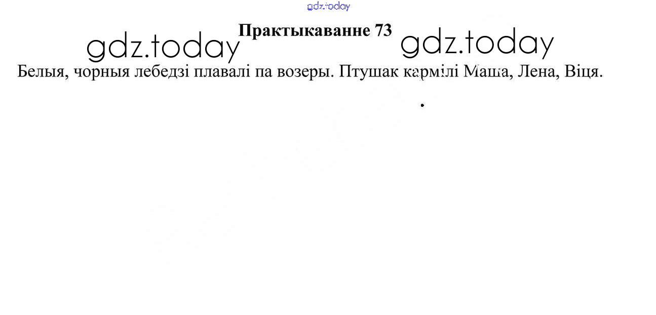 На страницах сайта gdz.today вы найдете учебный и вспомогательный материал, направленный на улучшения знаний школьной программы. ГДЗ - онлайн мир знаний Рашальнік да часткі 1. Практыкаванні 73 Учебнику по Белорусскому языку для 4 класса Свірыдзенка Национальный институт образования 2018