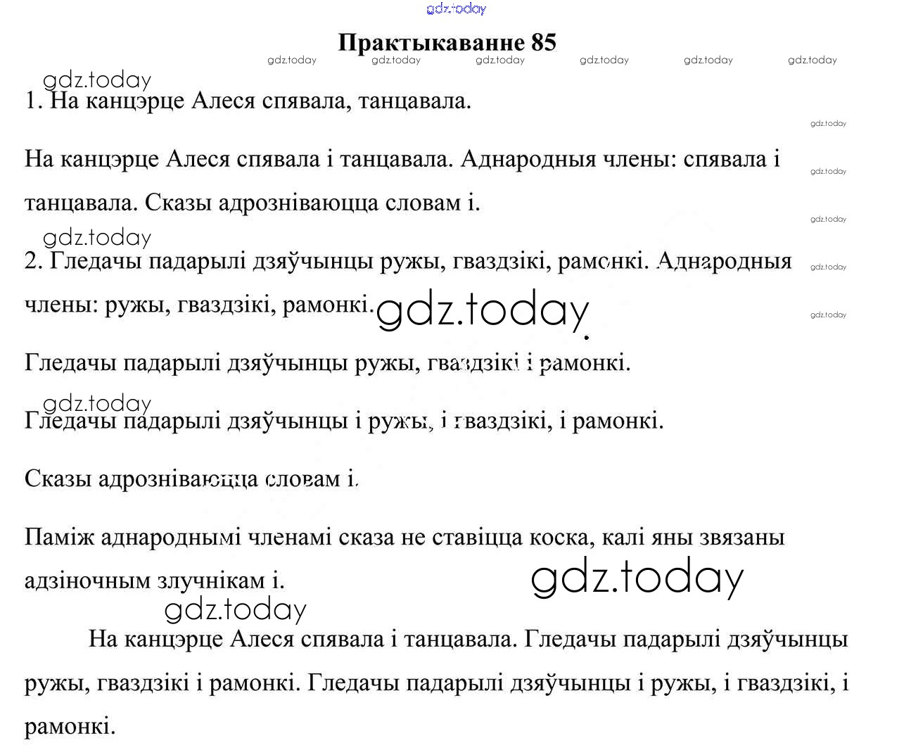 На страницах сайта gdz.today вы найдете учебный и вспомогательный материал, направленный на улучшения знаний школьной программы. ГДЗ - онлайн мир знаний Рашальнік да часткі 1. Практыкаванні 85 Учебнику по Белорусскому языку для 4 класса Свірыдзенка Национальный институт образования 2018