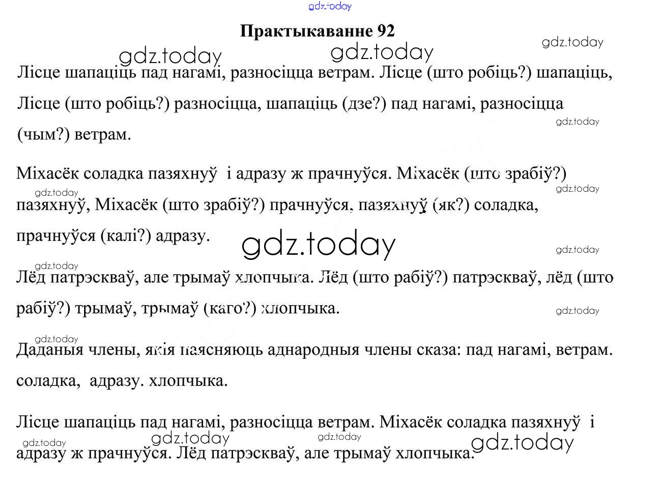 На страницах сайта gdz.today вы найдете учебный и вспомогательный материал, направленный на улучшения знаний школьной программы. ГДЗ - онлайн мир знаний Рашальнік да часткі 1. Практыкаванні 92 Учебнику по Белорусскому языку для 4 класса Свірыдзенка Национальный институт образования 2018