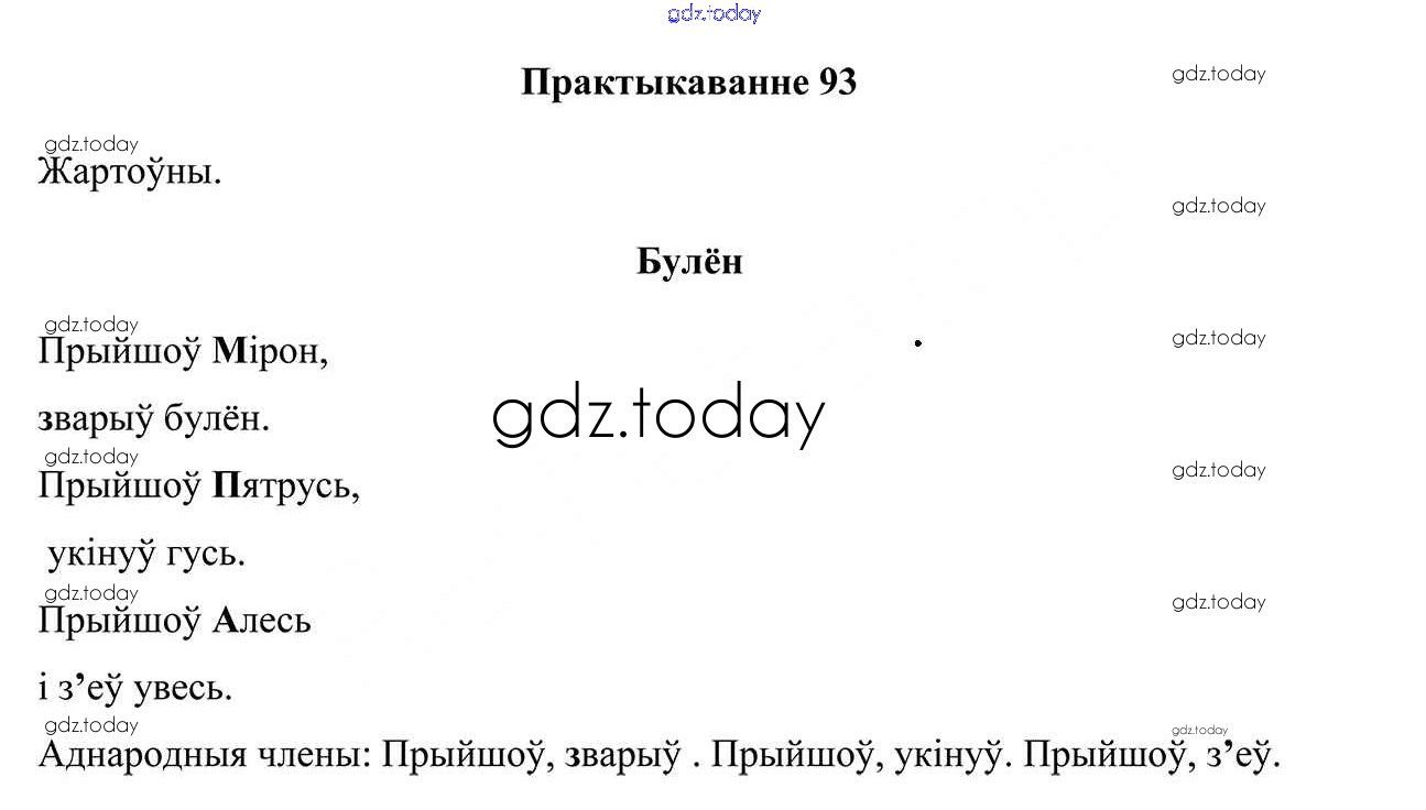 На страницах сайта gdz.today вы найдете учебный и вспомогательный материал, направленный на улучшения знаний школьной программы. ГДЗ - онлайн мир знаний Рашальнік да часткі 1. Практыкаванні 93 Учебнику по Белорусскому языку для 4 класса Свірыдзенка Национальный институт образования 2018