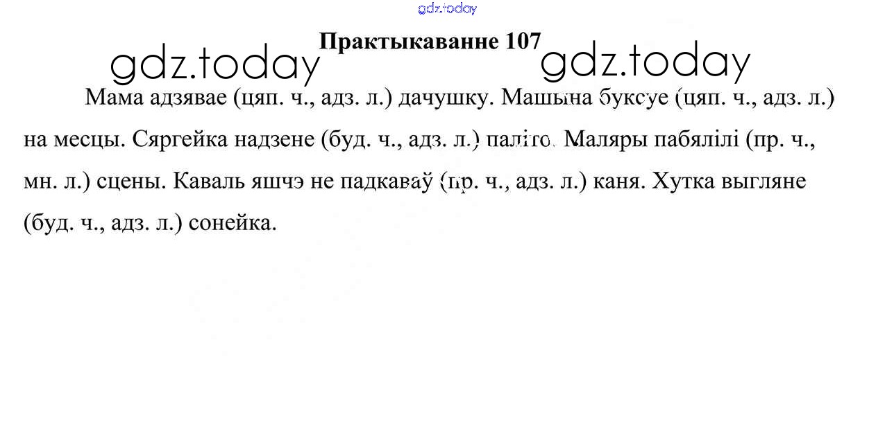 На страницах сайта gdz.today вы найдете учебный и вспомогательный материал, направленный на улучшения знаний школьной программы. ГДЗ - онлайн мир знаний Рашальнік да часткі 2. Практыкаванні 107 Учебнику по Белорусскому языку для 4 класса Свірыдзенка Национальный институт образования 2018