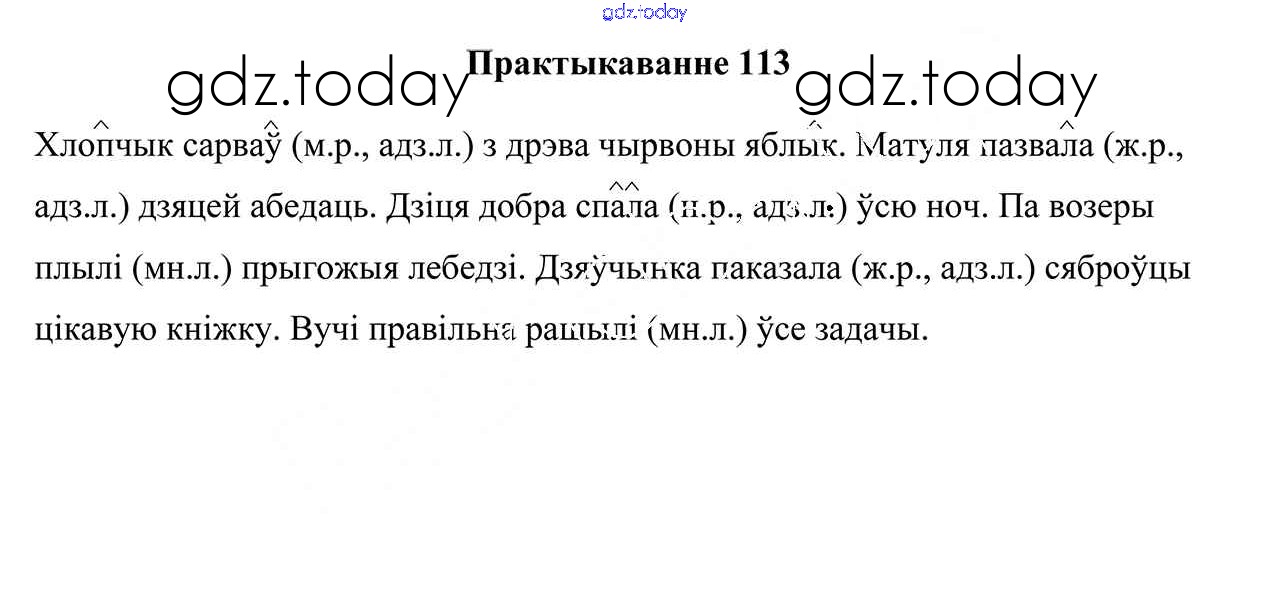 На страницах сайта gdz.today вы найдете учебный и вспомогательный материал, направленный на улучшения знаний школьной программы. ГДЗ - онлайн мир знаний Рашальнік да часткі 2. Практыкаванні 113 Учебнику по Белорусскому языку для 4 класса Свірыдзенка Национальный институт образования 2018