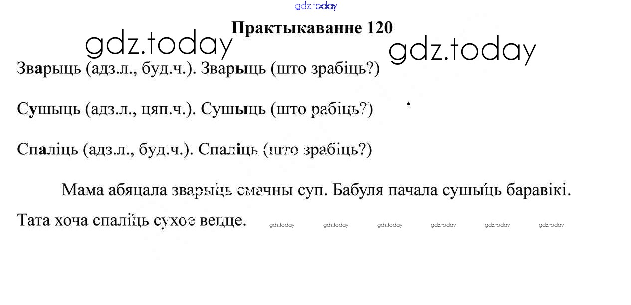 На страницах сайта gdz.today вы найдете учебный и вспомогательный материал, направленный на улучшения знаний школьной программы. ГДЗ - онлайн мир знаний Рашальнік да часткі 2. Практыкаванні 120 Учебнику по Белорусскому языку для 4 класса Свірыдзенка Национальный институт образования 2018