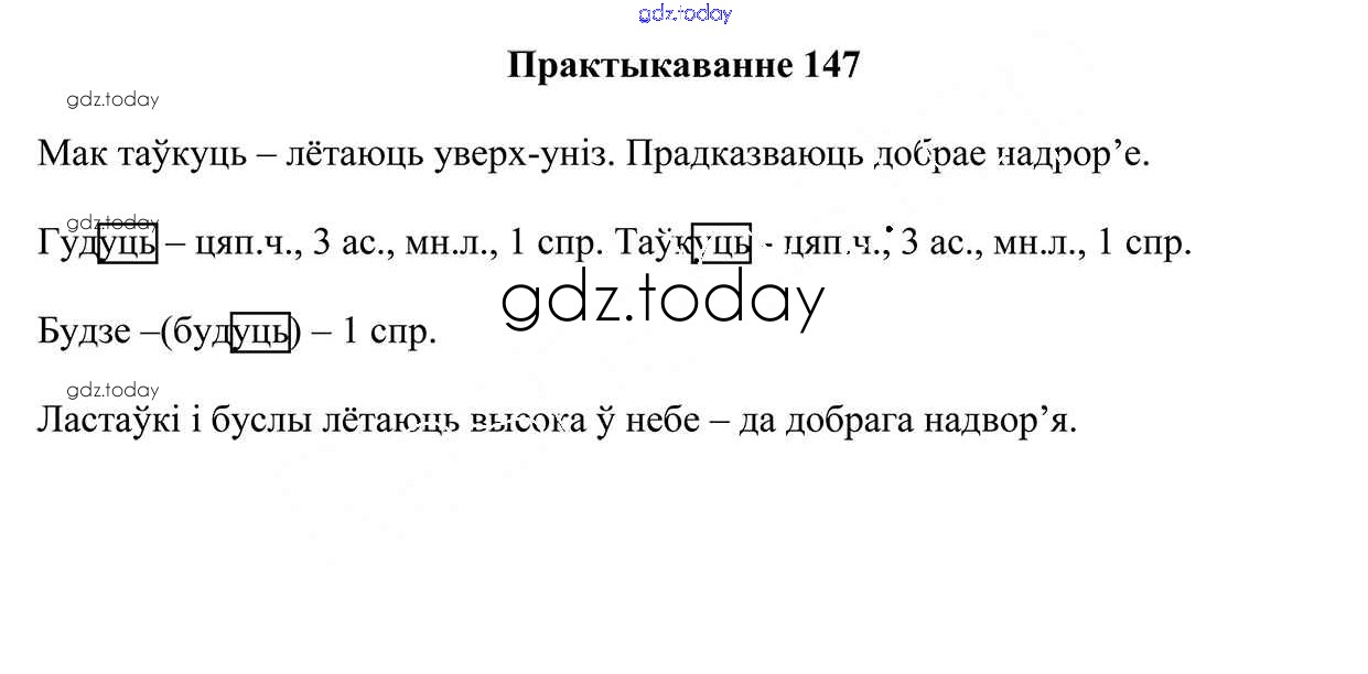 На страницах сайта gdz.today вы найдете учебный и вспомогательный материал, направленный на улучшения знаний школьной программы. ГДЗ - онлайн мир знаний Рашальнік да часткі 2. Практыкаванні 147 Учебнику по Белорусскому языку для 4 класса Свірыдзенка Национальный институт образования 2018