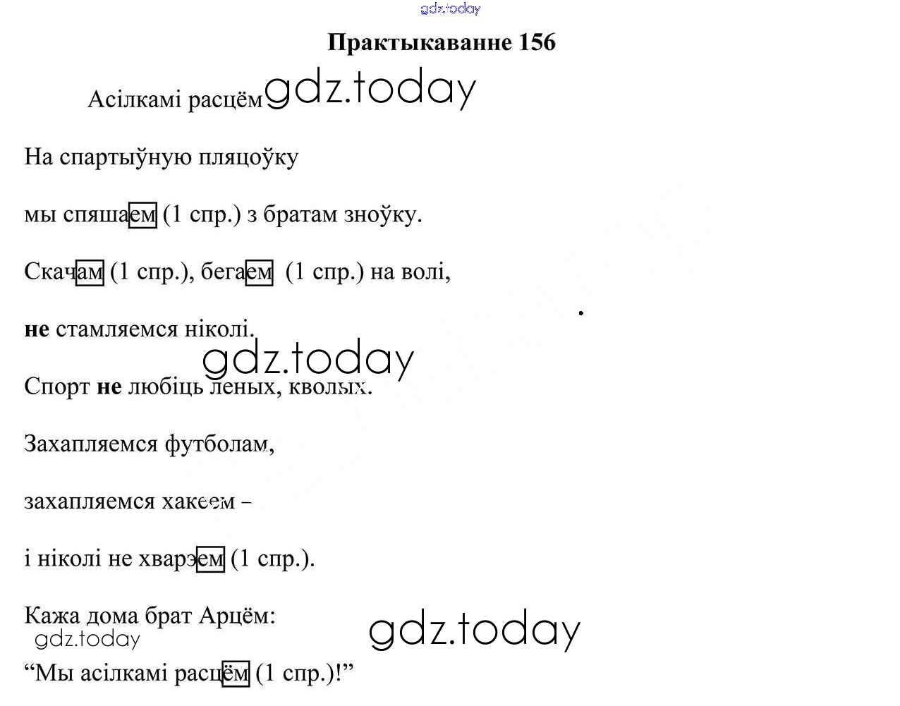 На страницах сайта gdz.today вы найдете учебный и вспомогательный материал, направленный на улучшения знаний школьной программы. ГДЗ - онлайн мир знаний Рашальнік да часткі 2. Практыкаванні 156 Учебнику по Белорусскому языку для 4 класса Свірыдзенка Национальный институт образования 2018