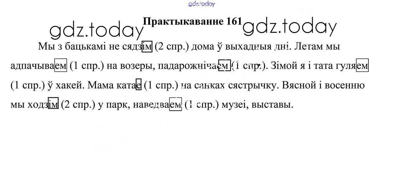 На страницах сайта gdz.today вы найдете учебный и вспомогательный материал, направленный на улучшения знаний школьной программы. ГДЗ - онлайн мир знаний Рашальнік да часткі 2. Практыкаванні 161 Учебнику по Белорусскому языку для 4 класса Свірыдзенка Национальный институт образования 2018