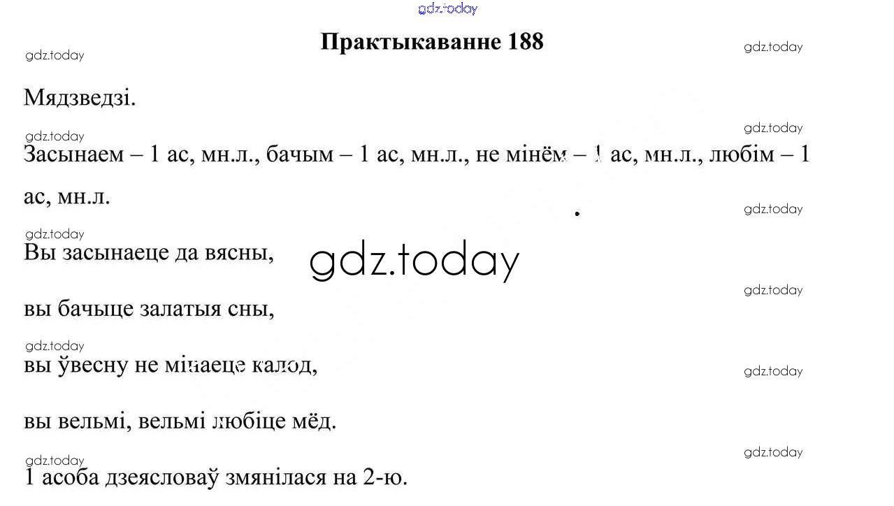 На страницах сайта gdz.today вы найдете учебный и вспомогательный материал, направленный на улучшения знаний школьной программы. ГДЗ - онлайн мир знаний Рашальнік да часткі 2. Практыкаванні 188 Учебнику по Белорусскому языку для 4 класса Свірыдзенка Национальный институт образования 2018