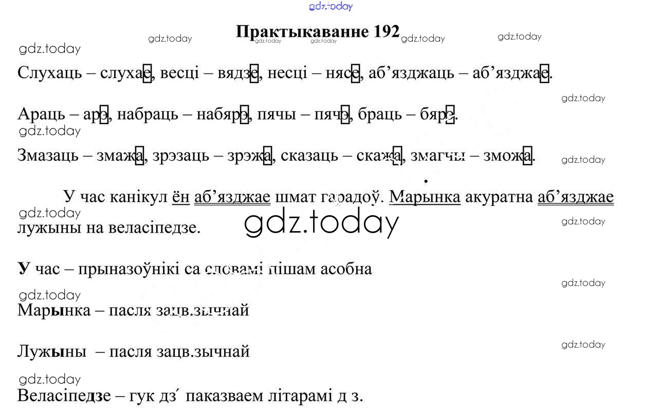 На страницах сайта gdz.today вы найдете учебный и вспомогательный материал, направленный на улучшения знаний школьной программы. ГДЗ - онлайн мир знаний Рашальнік да часткі 2. Практыкаванні 192 Учебнику по Белорусскому языку для 4 класса Свірыдзенка Национальный институт образования 2018