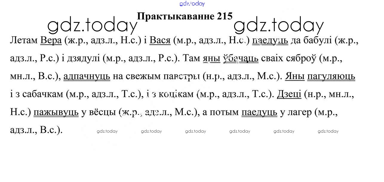 На страницах сайта gdz.today вы найдете учебный и вспомогательный материал, направленный на улучшения знаний школьной программы. ГДЗ - онлайн мир знаний Рашальнік да часткі 2. Практыкаванні 215 Учебнику по Белорусскому языку для 4 класса Свірыдзенка Национальный институт образования 2018