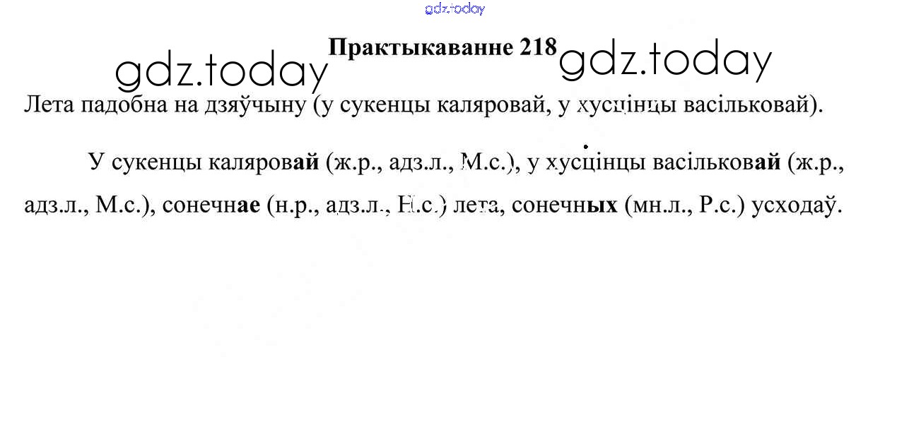 На страницах сайта gdz.today вы найдете учебный и вспомогательный материал, направленный на улучшения знаний школьной программы. ГДЗ - онлайн мир знаний Рашальнік да часткі 2. Практыкаванні 218 Учебнику по Белорусскому языку для 4 класса Свірыдзенка Национальный институт образования 2018