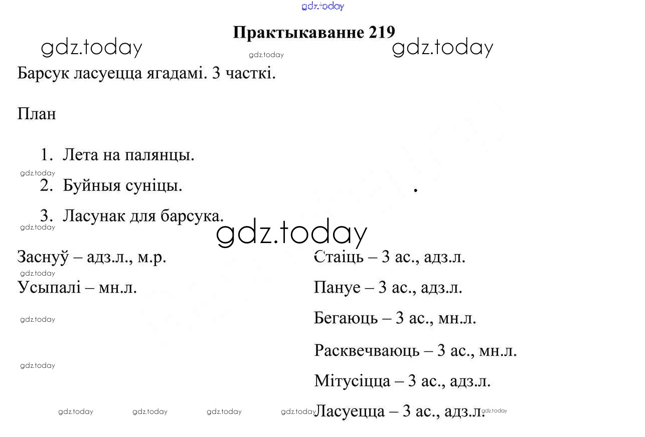 На страницах сайта gdz.today вы найдете учебный и вспомогательный материал, направленный на улучшения знаний школьной программы. ГДЗ - онлайн мир знаний Рашальнік да часткі 2. Практыкаванні 219 Учебнику по Белорусскому языку для 4 класса Свірыдзенка Национальный институт образования 2018
