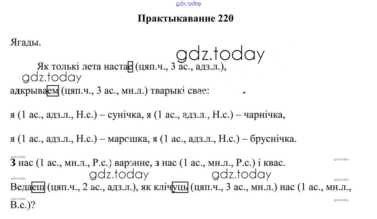 На страницах сайта gdz.today вы найдете учебный и вспомогательный материал, направленный на улучшения знаний школьной программы. ГДЗ - онлайн мир знаний Рашальнік да часткі 2. Практыкаванні 220 Учебнику по Белорусскому языку для 4 класса Свірыдзенка Национальный институт образования 2018