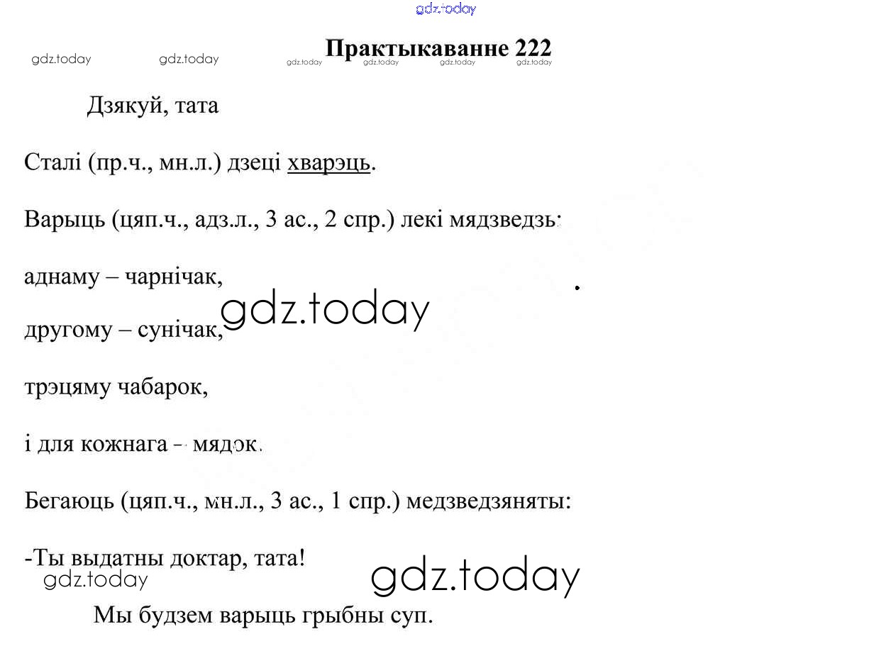 На страницах сайта gdz.today вы найдете учебный и вспомогательный материал, направленный на улучшения знаний школьной программы. ГДЗ - онлайн мир знаний Рашальнік да часткі 2. Практыкаванні 222 Учебнику по Белорусскому языку для 4 класса Свірыдзенка Национальный институт образования 2018