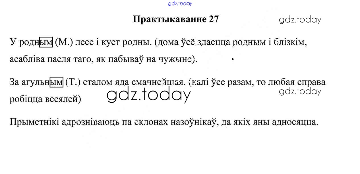 На страницах сайта gdz.today вы найдете учебный и вспомогательный материал, направленный на улучшения знаний школьной программы. ГДЗ - онлайн мир знаний Рашальнік да часткі 2. Практыкаванні 27 Учебнику по Белорусскому языку для 4 класса Свірыдзенка Национальный институт образования 2018