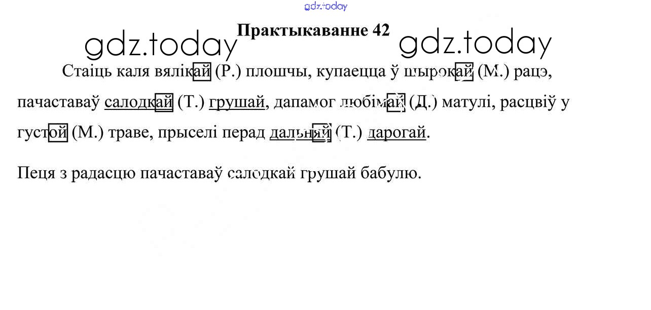 На страницах сайта gdz.today вы найдете учебный и вспомогательный материал, направленный на улучшения знаний школьной программы. ГДЗ - онлайн мир знаний Рашальнік да часткі 2. Практыкаванні 42 Учебнику по Белорусскому языку для 4 класса Свірыдзенка Национальный институт образования 2018