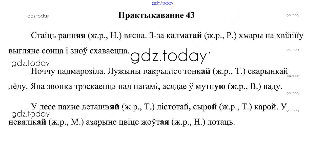 На страницах сайта gdz.today вы найдете учебный и вспомогательный материал, направленный на улучшения знаний школьной программы. ГДЗ - онлайн мир знаний Рашальнік да часткі 2. Практыкаванні 43 Учебнику по Белорусскому языку для 4 класса Свірыдзенка Национальный институт образования 2018