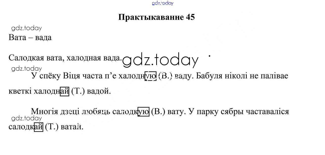 На страницах сайта gdz.today вы найдете учебный и вспомогательный материал, направленный на улучшения знаний школьной программы. ГДЗ - онлайн мир знаний Рашальнік да часткі 2. Практыкаванні 45 Учебнику по Белорусскому языку для 4 класса Свірыдзенка Национальный институт образования 2018