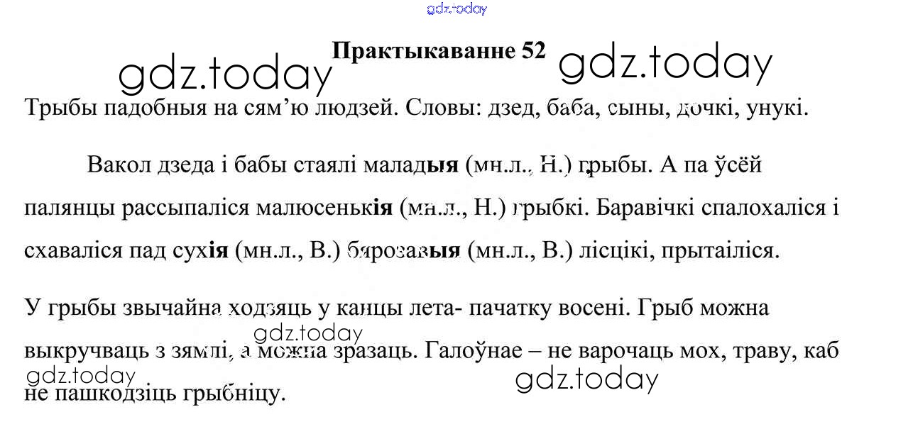 На страницах сайта gdz.today вы найдете учебный и вспомогательный материал, направленный на улучшения знаний школьной программы. ГДЗ - онлайн мир знаний Рашальнік да часткі 2. Практыкаванні 52 Учебнику по Белорусскому языку для 4 класса Свірыдзенка Национальный институт образования 2018