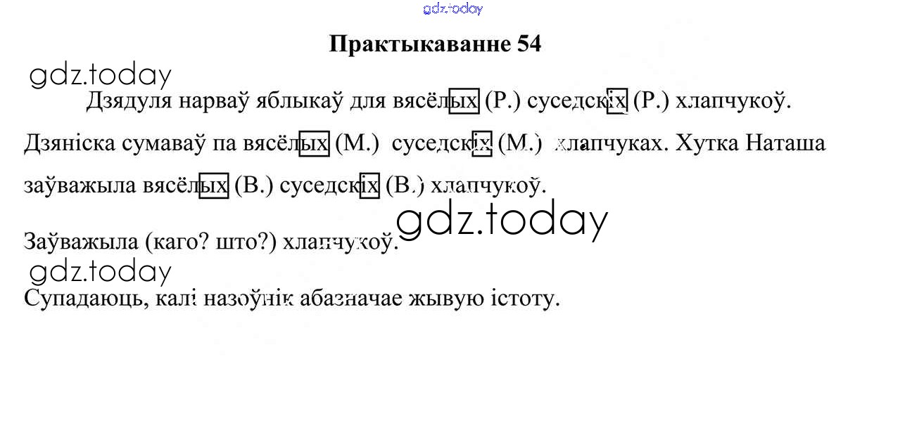 На страницах сайта gdz.today вы найдете учебный и вспомогательный материал, направленный на улучшения знаний школьной программы. ГДЗ - онлайн мир знаний Рашальнік да часткі 2. Практыкаванні 54 Учебнику по Белорусскому языку для 4 класса Свірыдзенка Национальный институт образования 2018