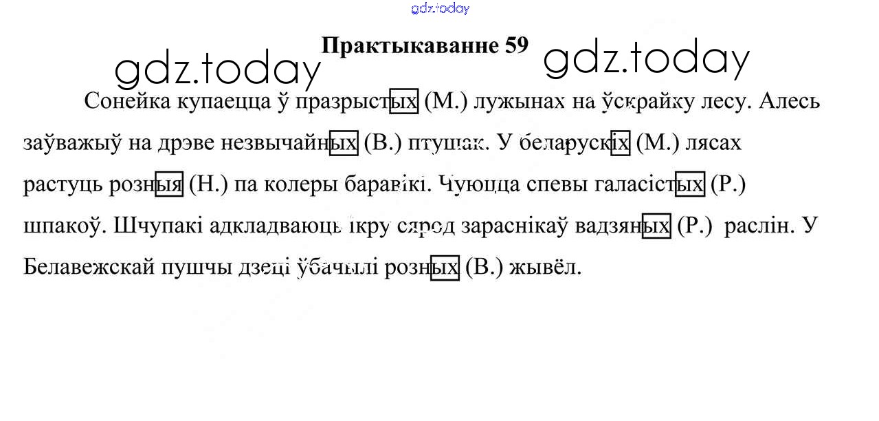 На страницах сайта gdz.today вы найдете учебный и вспомогательный материал, направленный на улучшения знаний школьной программы. ГДЗ - онлайн мир знаний Рашальнік да часткі 2. Практыкаванні 59 Учебнику по Белорусскому языку для 4 класса Свірыдзенка Национальный институт образования 2018