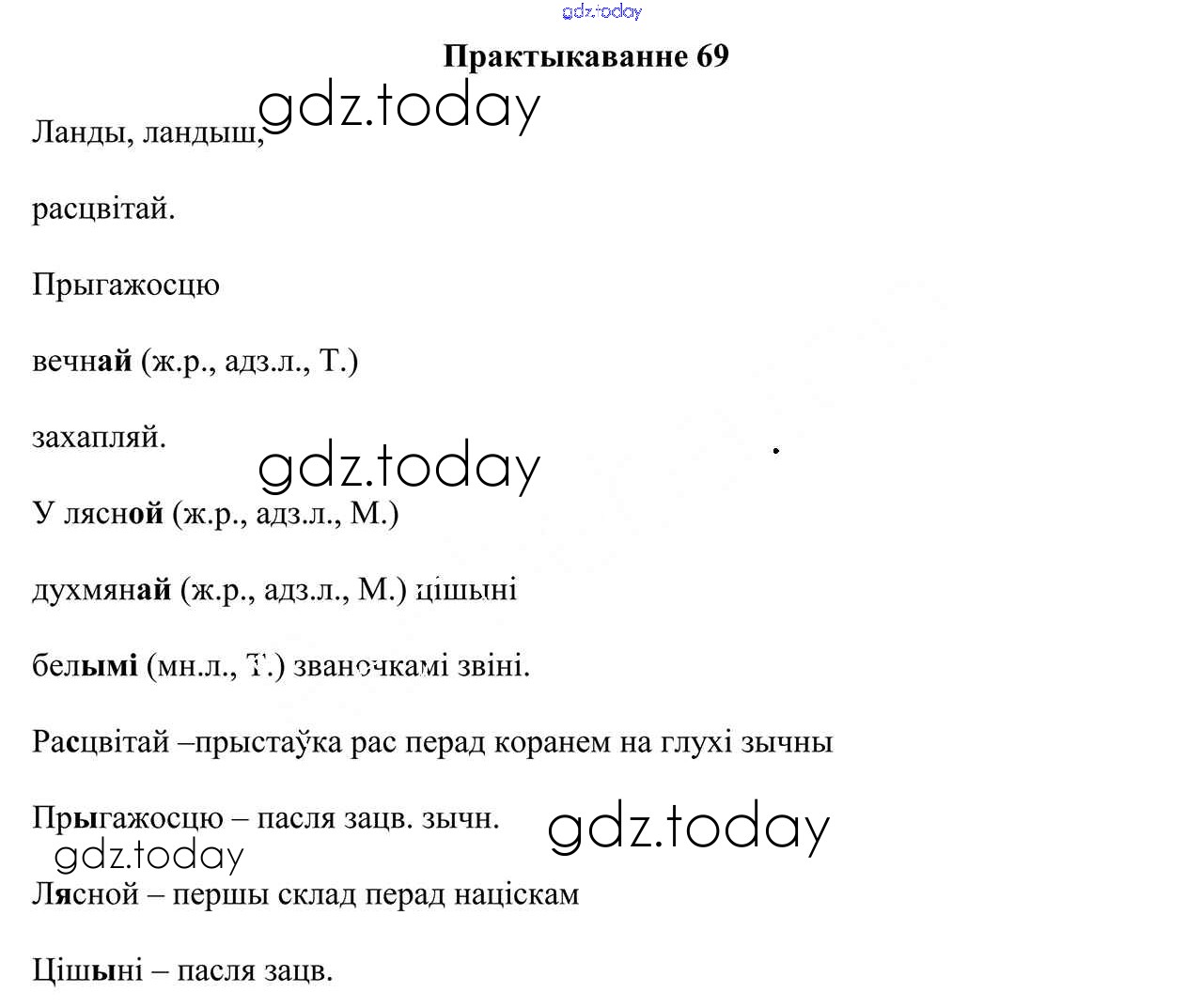 На страницах сайта gdz.today вы найдете учебный и вспомогательный материал, направленный на улучшения знаний школьной программы. ГДЗ - онлайн мир знаний Рашальнік да часткі 2. Практыкаванні 69 Учебнику по Белорусскому языку для 4 класса Свірыдзенка Национальный институт образования 2018